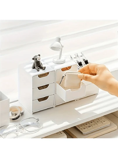 1个桌面收纳盒,多功能迷你塑料收纳盒,带抽屉,适合桌面或壁挂式使用 - 节省空间,可收纳化妆品和配饰,手提包造型设计,多种颜色可选,便携式珠宝盒/小珠宝盒 - 淺藍色 - 查看 6