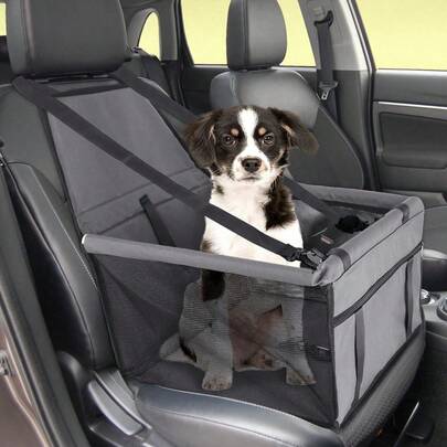1 件狗狗汽车座椅和旅行背带 - 牛津透气可折叠柔软可洗宠物背带,配有腰带和可调节肩带,确保汽车旅行并为猫和小型犬提供舒适的高视野