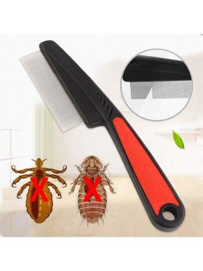 1入組狗狗梳毛虱子跳蚤梳,不銹鋼細針貓毛解結梳,寵物毛髮配件 - 紅色 - 查看 1