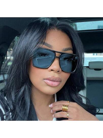 1 件双桥时尚眼镜,时尚眼镜适合日常、户外、街头风格、旅行、派对飞行员形状太阳镜 - 黑色 - 查看 1
