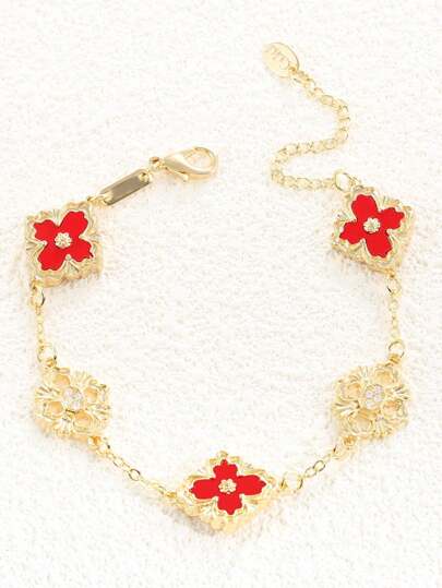 1只雙面雕花時尚鏈條派對手鍊女款 - 鏤空雕花紅色 - 查看 15