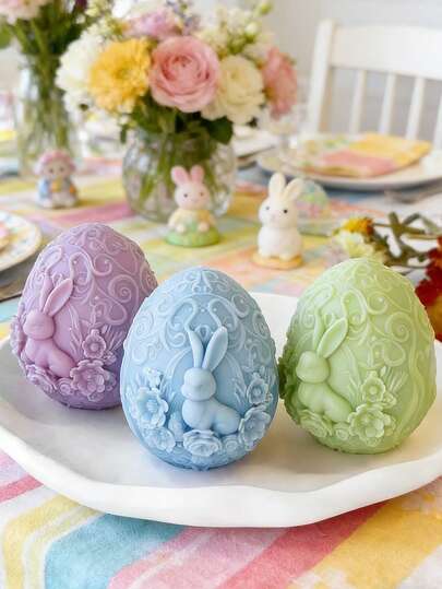 1个复活节兔子蛋香薰蜡烛硅胶模具,易脱模,适用于石膏/树脂/肥皂/蜡烛,复活节桌面装饰品,节日礼物 - A - 查看 5