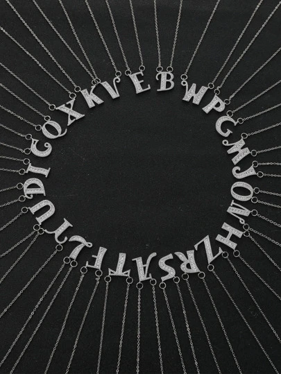 1個優雅豪華、完全鑲嵌立體閃石英文字母吊墜項鍊,適合女性日常佩戴 - 銀色 - 查看 1