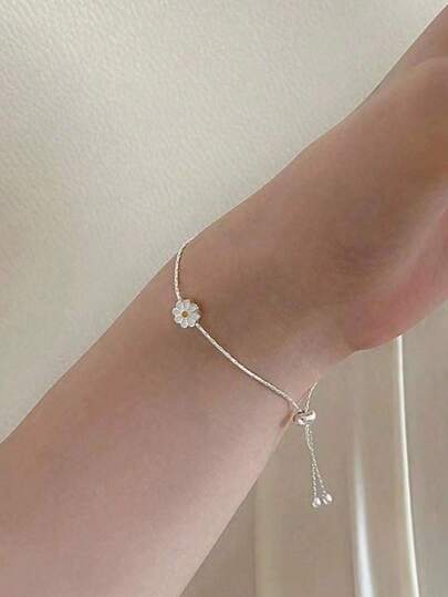 1入優雅獨特的精緻時尚s925純銀雛菊花吊墜手鍊,調節鍊條,適合日常穿著和特殊場合 - 銀色 - 查看 1