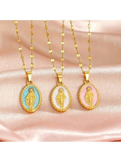1件优雅基督教圣母玛利亚釉面18k不锈钢吊坠项链,女士项链,适合日常、派对、节日、宗教风格首饰,可作为礼物送给朋友、家人、情侣、女士。 - 彩色 - 查看 1