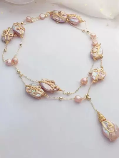 1 件优雅人造珍珠装饰项链,适合女士夏季假期 - 彩色 - 查看 9