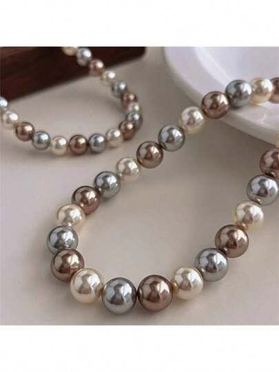 1pc Elegant Freshwater Pearl Necklace - Mixed Candy Color Luxury Women's Clavicle Chain Suitable For Daily Wear And Gifting