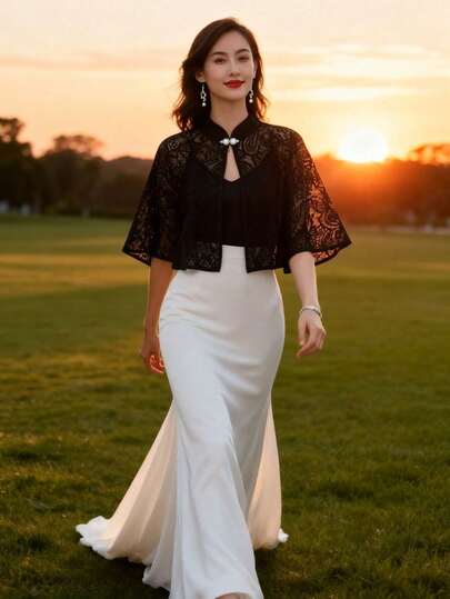 1 件优雅镂空新娘披肩,复古蕾丝斗篷/休闲百搭披肩开衫,防晒,节日、舞会、派对的服装配饰 - 彩色 - 查看 10