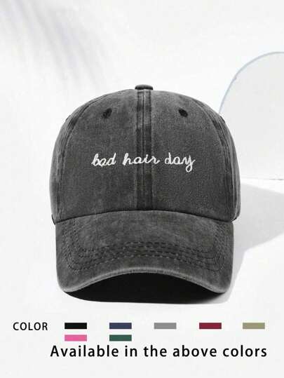 1 件刺绣“Bad Hair Day”水洗棒球帽,透气可调节高尔夫遮阳帽,适合户外活动,女士夏季时尚弧形帽檐遮阳帽,男士/中性 Y2K 风格遮阳帽 - 刺繡 - 查看 1