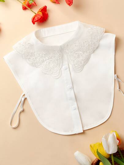 1 件刺绣蕾丝领子假领子适合情人节连衣裙 - 白色 - 查看 1