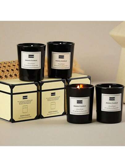 1 件装精油香薰蜡烛,室内家用大豆蜡烛,香氛礼品,小黑杯 - 彩色 - 查看 4