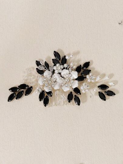 1 件欧式黑水晶新娘发梳,婚礼派对活动发饰,时尚发饰礼物 - 黑色 - 查看 1