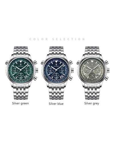 1 件时尚男士石英表,不锈钢多功能日期计时防水夜光指针手表,适合商务场合的腕表 - 銀色 - 查看 6