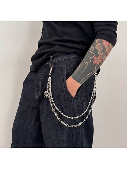 1件装时尚朋克极简蜘蛛吊坠裤链,男士嘻哈风裤链饰品,万圣节礼物