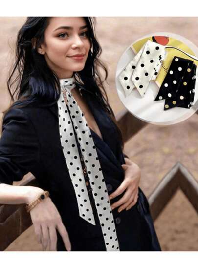 1件装时尚缎带波点印花薄围巾头巾韩式领巾长围巾婚礼礼服 - 彩色 - 查看 1