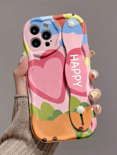 1 件时尚腕带,带心形花朵印花,加厚防震手机保护壳,带支架功能,适用于 Apple 和系列,防水防摔防刮 - 彩色 - 查看 1