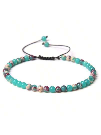 1入時尚可調整天然寶石珠鏈手鍊,4mm手工半寶石瑜珈能量珠,diy首飾、日常佩戴、送禮皆宜 - 彩色 - 查看 2