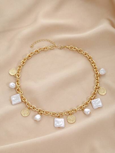 1條時尚巴洛克假珍珠項鍊,鎖骨鏈,毛衣鏈適用於女性 - 彩色 - 查看 1