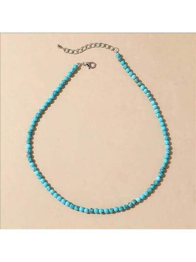 1 件时尚波西米亚风格绿松石串珠项链,适合派对、约会、办公室佩戴 - 藍色 - 查看 1