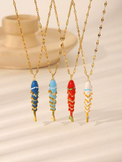 1 件时尚彩色油滴幸运鱼吊坠项链,卡通项链,充满活力的春天色彩,海洋生物夏季海滩风格珠宝,不锈钢金色不褪色防水女士珠宝,日常、节日、约会配饰或礼物 - 魚 - 查看 9