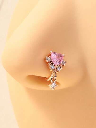 1 件时尚铜合金水钻装饰心形鼻夹,玫瑰金,适合女性日常佩戴 - 玫瑰金 - 查看 1