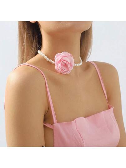 1件装 时尚优雅花朵珍珠项链(女士款) - 粉色 - 查看 24