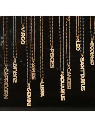 1入組時尚優雅不銹鋼吊墜首飾類12星座字母項鍊適用於女性日常裝飾用品 - 金黃色 - 查看 1