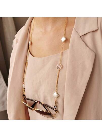 1 件时尚金色金属山茶花女士眼镜链,防滑眼镜和老花眼镜挂绳 - 彩色 - 查看 1
