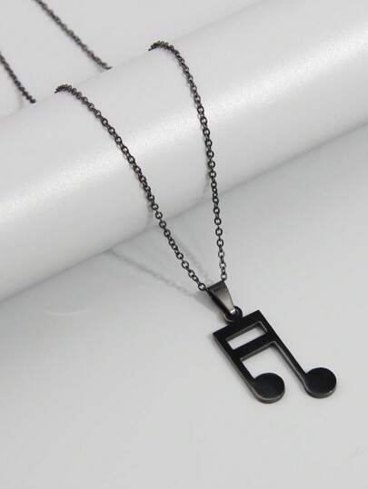 1件流行的嘻哈風格不銹鋼黑色音符垂飾女士項鍊