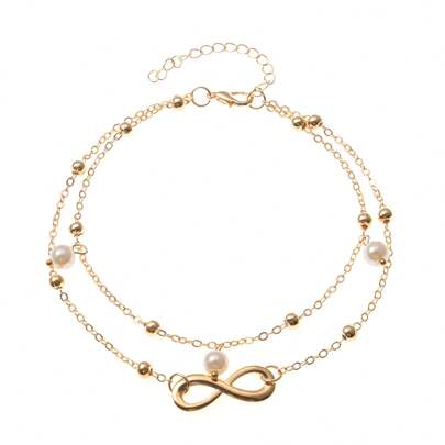 1件时尚简约无限符号和心形仿珍珠吊坠脚链,适合海滩、度假、日常搭配凉鞋佩戴,节日、生日礼物