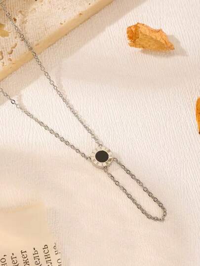 1 件时尚罗马黑贝壳项链,简约不锈钢颈链,适合日常佩戴 - 羅馬Y字形項鍊 - 查看 1