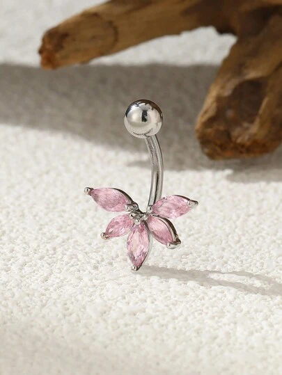 1入流行不鏽鋼扇形葉和方鑽肚臍環,適用於女性 - 彩色 - 查看 1