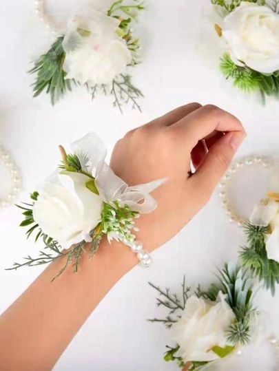 1 件仿珍珠装饰腕花,无纺布派对手链花,适用于婚礼 - 白色 - 查看 5