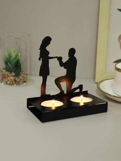 1入組人物設計蠟燭鐵燭台裝飾 - 黑色 - 查看 1