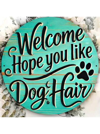 1 件扁平金属“希望你喜欢狗毛”欢迎牌 - 复古风格墙面装饰牌,适用于家居、户外、花园、草坪、庭院 - 圆形扁平金属牌匾,直径 7.87 英寸,孔位随机 - 彩色 - 查看 1