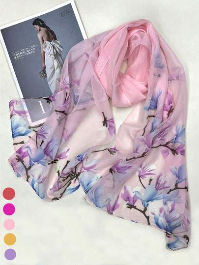 1件装印花多功能时尚可爱轻盈围巾头巾,适合女性,春夏新款,可搭配连衣裙、沙滩装、假日装。