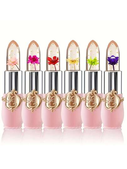 1支花樣果凍唇膏,溫度變色保濕花瓣唇膏,長效滋養護唇霜,顏色神奇轉換唇彩
