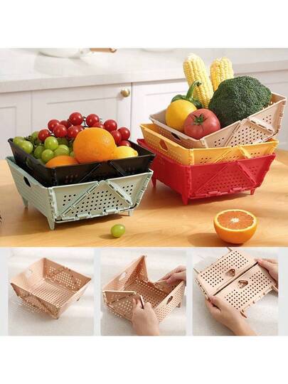 1入摺疊水果籃,廚房收納籃,多功能戶外便攜水果盒,汽車水果籃 - 紅色 - 查看 1