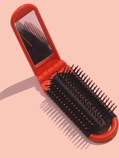 可折疊髮刷附鏡子1入組袖珍口袋尺寸旅行刷迷你可折疊旅行髮刷適用於車運動包錢包家庭旅行錢包禮品 - 橘色 - 查看 1