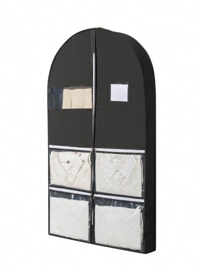 1個帶拉鍊和厚無紡布的四面包覆式衣物收納袋,防塵和旅行兩用,衣物收納袋(不包括衣架) - 黑色 - 查看 1