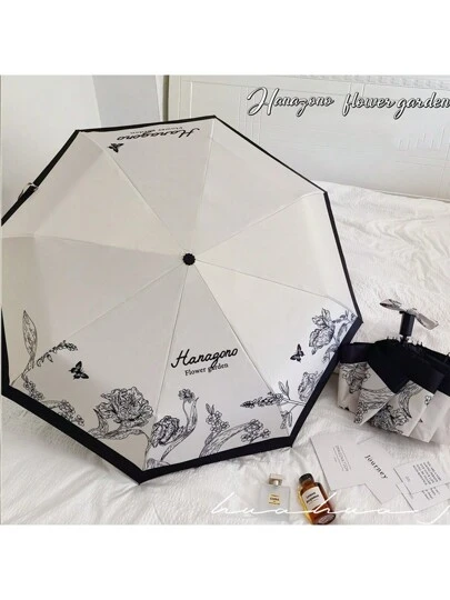 1把全自动开合伞,秘密花园印花,防晒防紫外线,可折叠,适合旅行,晴雨两用,春夏必备,伴娘礼物,房间/卧室装饰,海滩,旅行,男女皆宜,度假,可爱小物 - 黑與白 - 查看 1