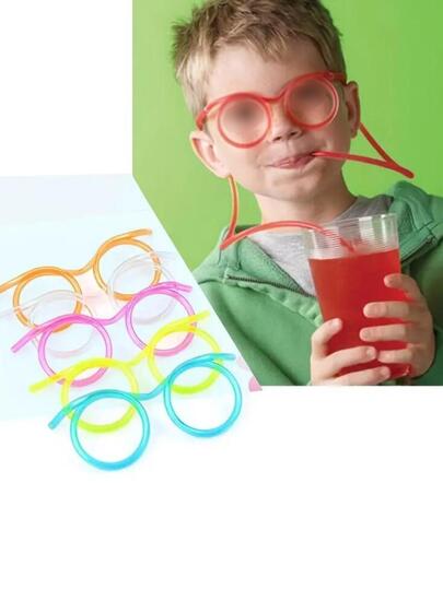 1 件装游戏玩家超长休闲眼镜吸管趣味眼镜新奇无味吸管、厨房、圣诞礼物、学校用品 - 彩色 - 查看 5