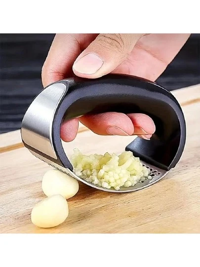 1件壓蒜器,搖桿式不銹鋼大蒜絞碎機,壓蒜器,大蒜切碎機,創意壓蒜器,不銹鋼壓蒜器,廚房小工具,廚房工具 - 黑色 - 查看 5