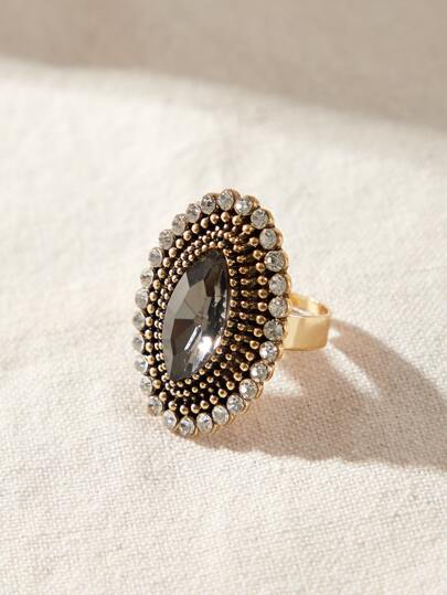 1 件几何水晶女士单环戒指,精致复古配饰 - 黑色 - 查看 1