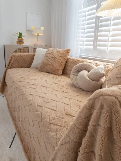 1入組幾何設計沙發巾現代家居布藝沙發套毯子四季皆宜 - 黃色 - 查看 1