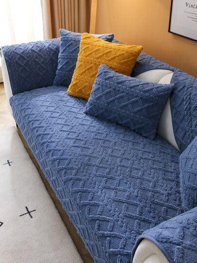 1入組幾何提花沙發巾 - 寶藍色 - 查看 1