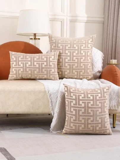 1入組幾何圖案靠墊套臥室客廳沙發椅卡其色枕套柔軟舒適家居裝飾靠墊套不含枕芯 - 卡其色 - 查看 10