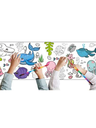 1張巨大的海洋動物彩色海報,最喜愛的巨型紙質海報掛畫,海洋派對的大彩色橫幅海報,學校課堂海洋裝飾 - 彩色 - 查看 5