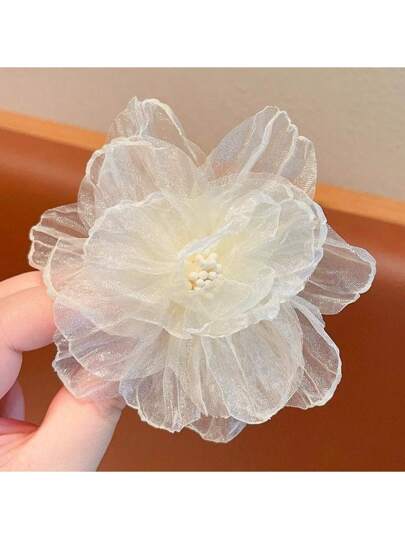 Review: 1件女孩自然風網狀花朵公主髮夾米色