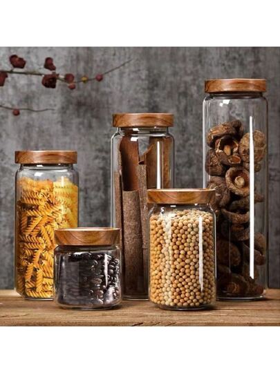 1 个带木盖的玻璃储物罐,带盖糖果罐,密封硼硅酸盐玻璃罐,用于咖啡豆、散叶茶、坚果、糖、香料、厨房配件,450 毫升 /16 盎司、750 毫升 /26 盎司、1000 毫升 /34 盎司、1500 毫升 /51 盎司,玻璃瓶 - 無色 - 查看 24